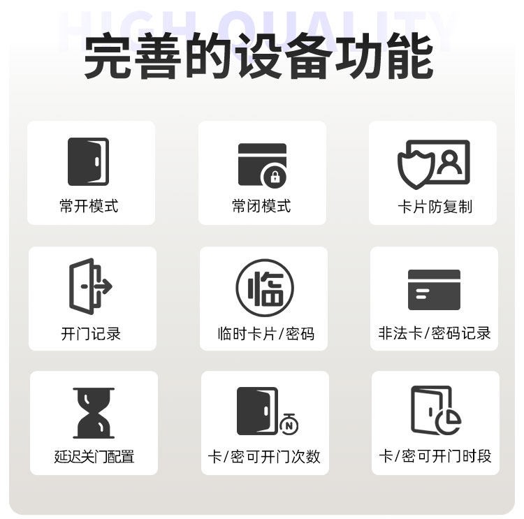 新界这款智能门锁提供室内门锁和防盗门锁两种选择,其中室内门锁尺寸为 2806521mm,适配 5050 锁体;防盗门锁尺寸为 3657021mm,适配 6068 锁体,可满足不同场景的安装需求。它采用铝合金一体成型搭配钢化玻璃面板打造,兼具坚固耐用的品质与简洁美观的视觉效果。门锁支持蓝牙无线通讯,解锁方式丰富多样,密码、卡片、蓝牙、钥匙四种方式随心选择,满足不同使用习惯与应急需求。其工作温度范围为 - 20~70℃,能适应多数地区的气候条件,采用碱性电池供电,安装更换便捷,是兼具安全性与实用性的门锁选择。